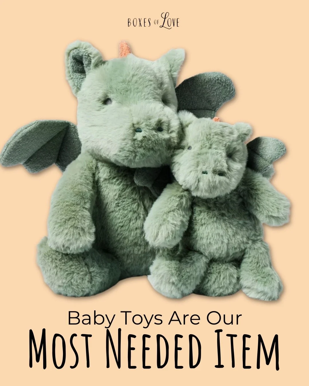 Every baby who receives a Box of Love gets more than just clothing; they receive essential items. Yes, baby toys are essential because they provide comfort, play, and a sense of safety in the midst of the unknown. We pack a few toys in every baby box, and our shelves are currently low.